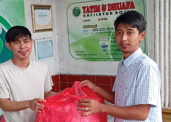 Membagikan makanan kepada Yatim Piatu dan Dhuafa.